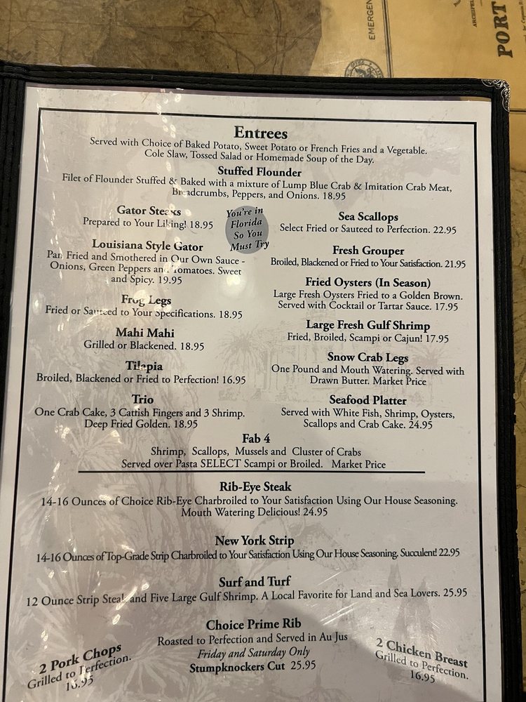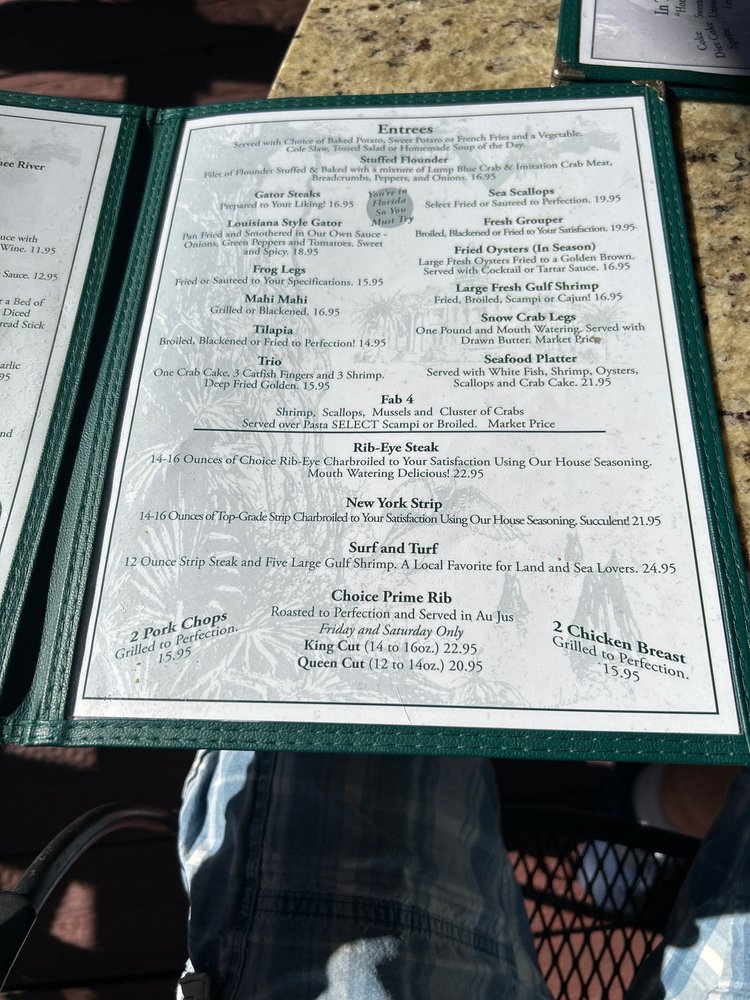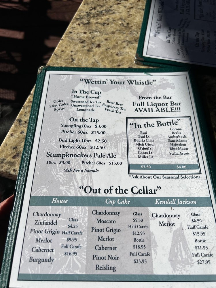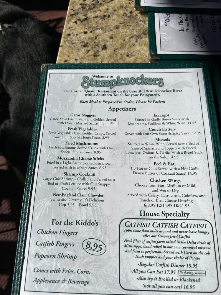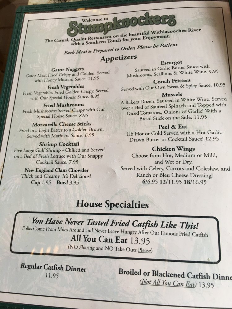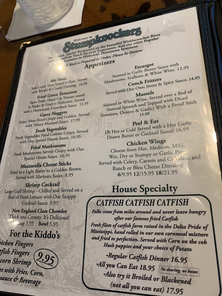 Stumpknockers Restaurants in Inverness, FL offers a delightful American-Seafood experience with a wide array of dishes to choose from. From Gator Nuggets to Fresh Vegetables and Mozzarella Cheese Sticks for starters, to specialty dishes like All You Can Eat Catfish and Homemade Meatloaf, this place has something for everyone. The atmosphere is cozy and welcoming, giving off a true Florida vibe with unique decor and friendly service. Customers rave about the generous portions and delicious flavors, with standout dishes like the blackened catfish, beer battered fish and chips, and the Oyster Po Boy. With outdoor seating, a full bar, and nightly specials, Stumpknockers is a must-try spot for a satisfying and flavorful dining experience.